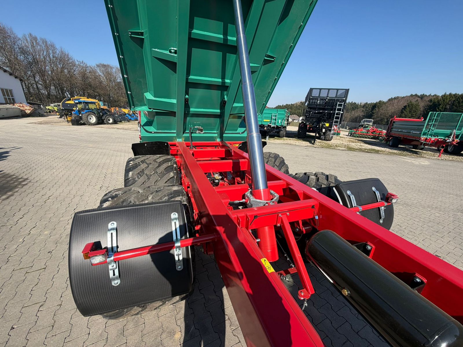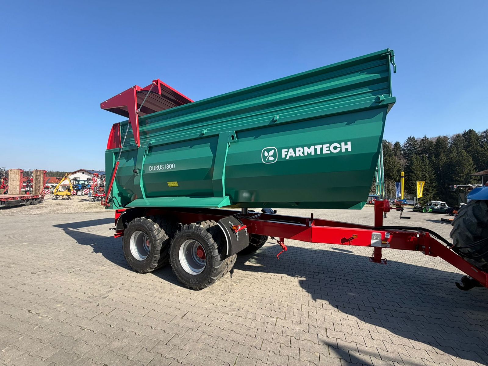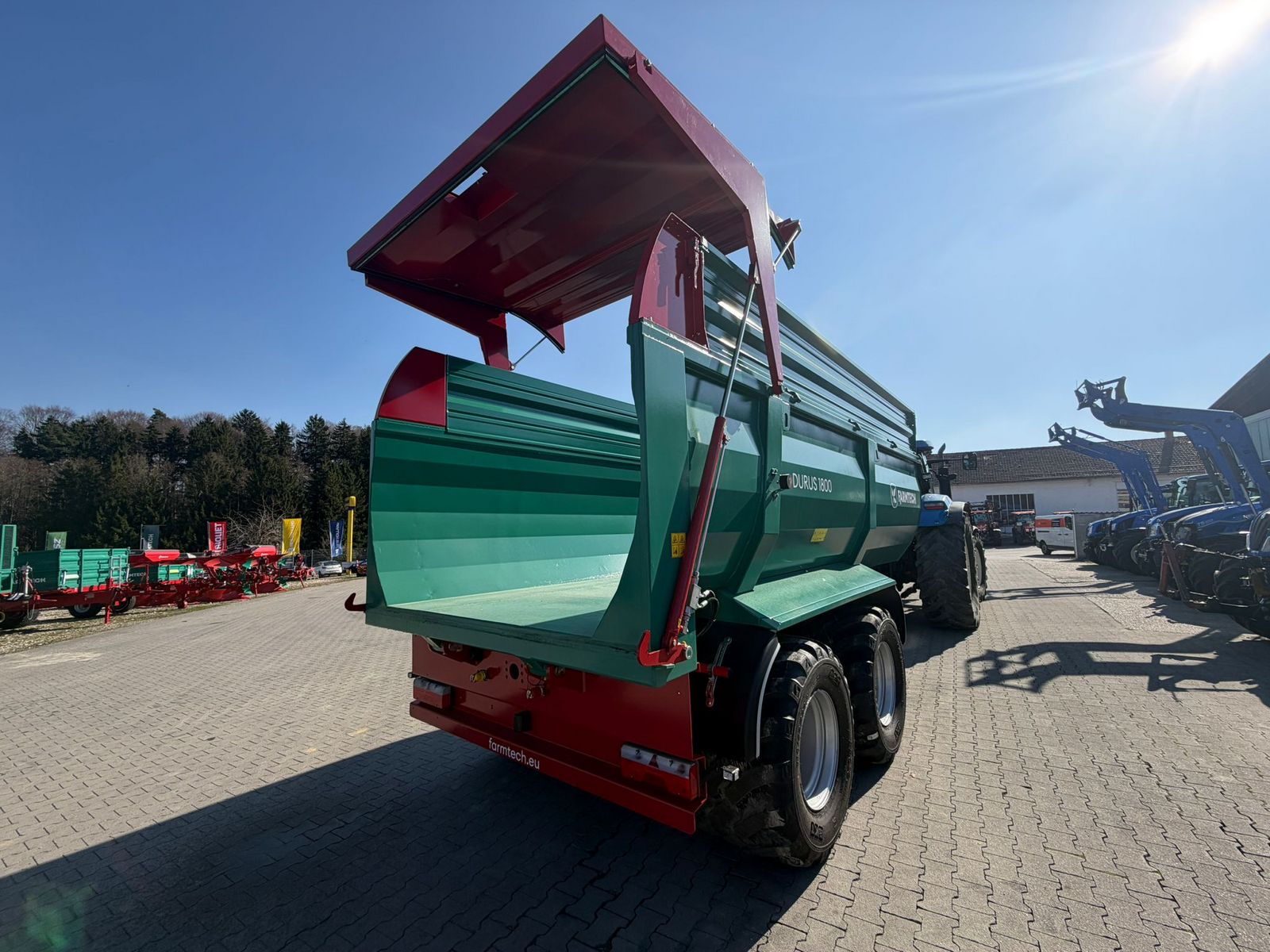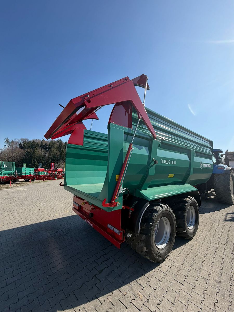 Farmtech Durus 1800 Zulässiges Gesamtgewicht 18.000 kg Brückenmaße 5400 x 2200/2300 mm Bordwandhöhe 1.250mm Aufsatzbordwände 500mm (gesamt 22 m3) Bereifung 710/40R22,5 Zweileitungs-Druckluft mit ALB Kippwinkel rückwärts 50 Grad Erforderliche Ölmenge 26,9 Liter 40 km/h AusführungKontaktdaten:
