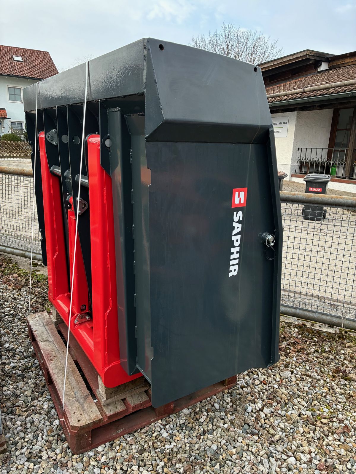 Saphir Transportbehälter TLH 180 Breite außen: 1915 mm Breite innen: 1800 mm Tiefe innen: 1100 mm Höhe Behälterwand innen: 400 mm Kat. I/II erforderliche Ölanschlüsse: 1x dw Zuladung: 1000 kg Gewicht: 300 kg Stufenlos kippbar ca. 50° abgeschrägte Schürf- und Auffahrkante Heckklappe mit 4 federbelasteten Bolzen Heckklappe abnehmbar Kennfixx-Hydraulikkupplungen 4 Aufnahmen für Steckrungen Bohrungen für Aufsatzbordwände Seitliche ZurrösenKontaktdaten: